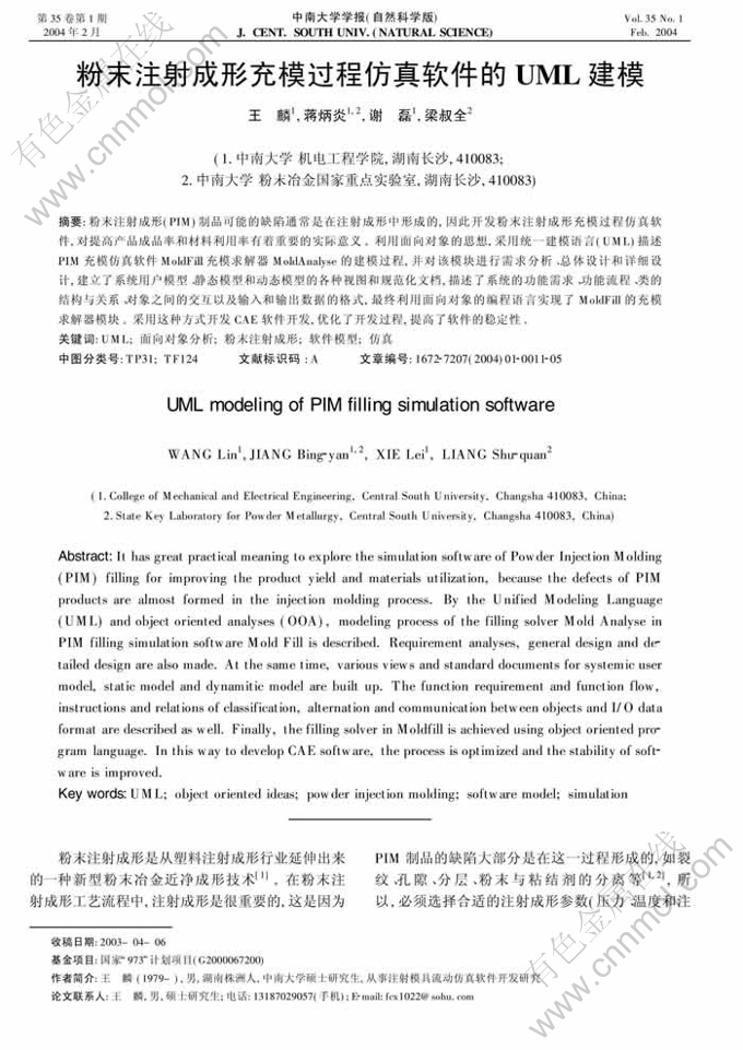 Key words:UML; object oriented ideas; powder injection molding; software model; simulation
