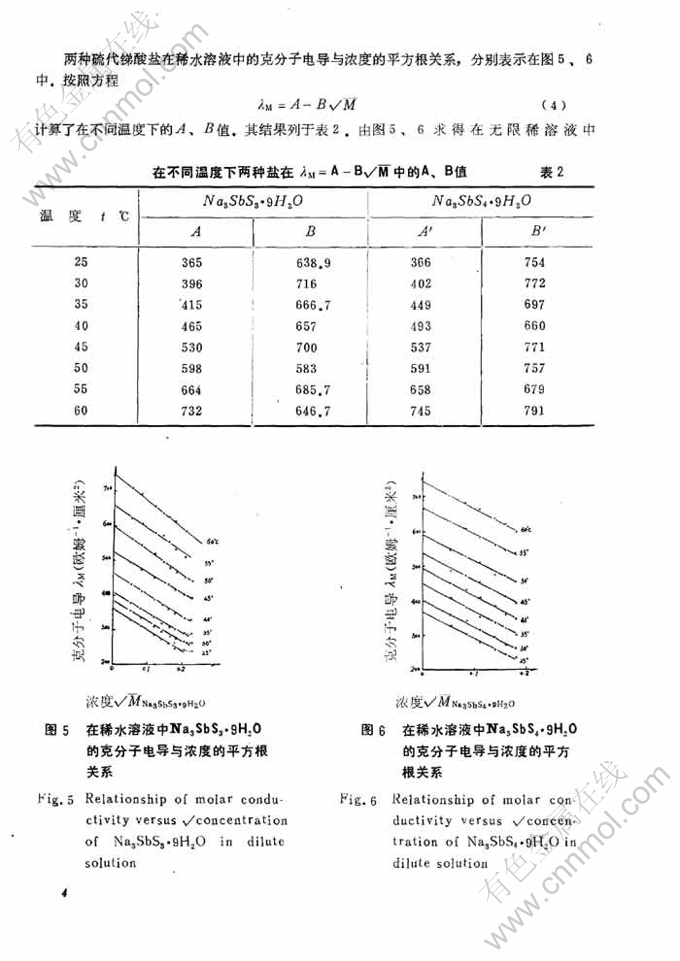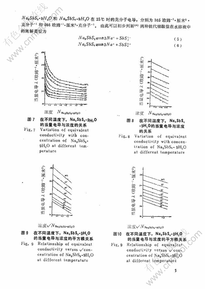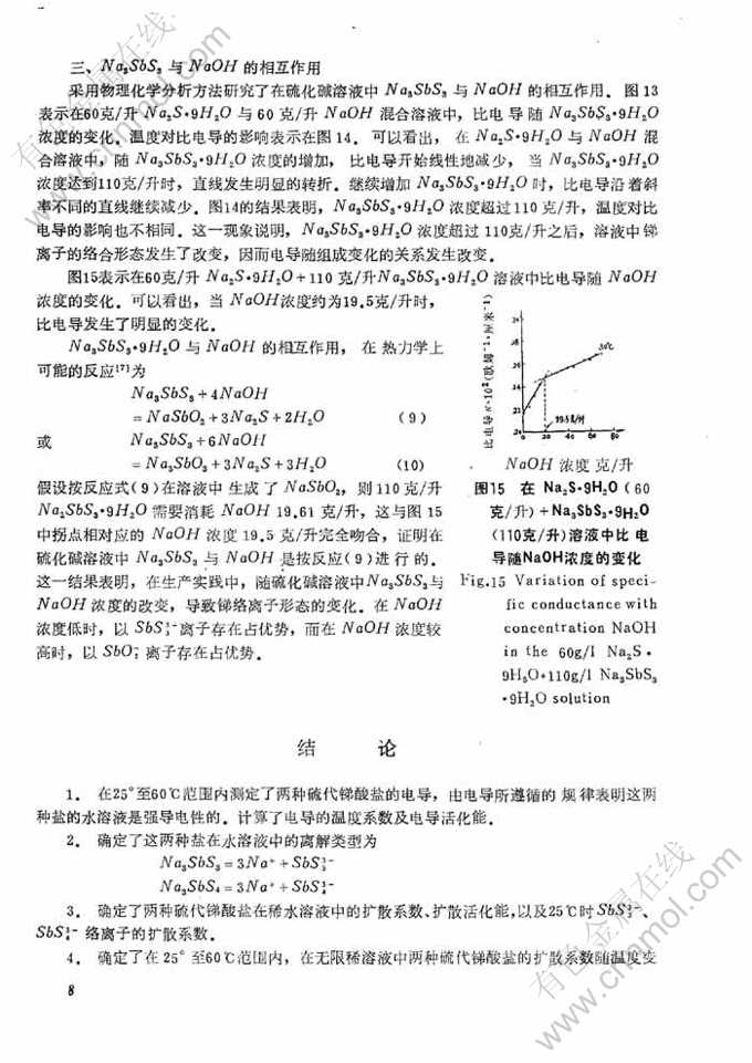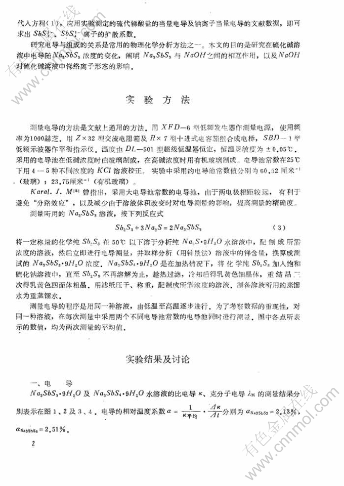 硫代锑酸盐水溶液的电导及扩散系数的研究