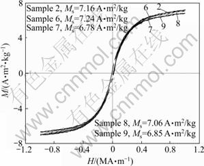 图5 合金在晶态、非晶态和部分非晶态下的磁滞回线
