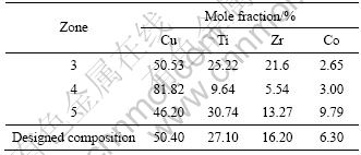 从表7可以得知:相对于设计成分,3区是富Zr贫Co相;4区主要是沿晶界析出,为富Cu相;5区是富Ti和Co相。