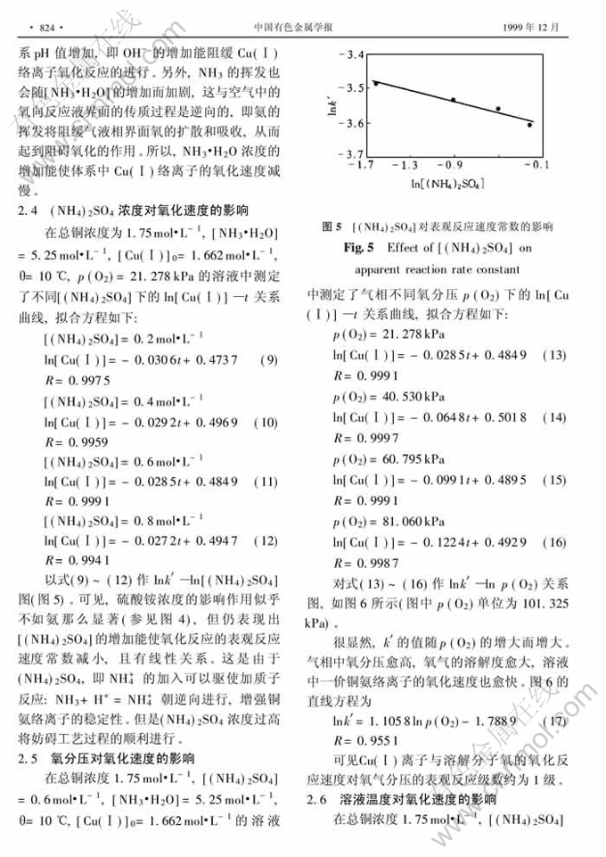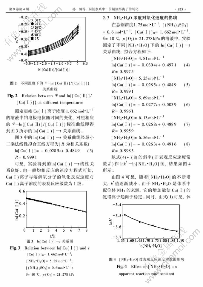 Key words:copper-ammonia-water system; ammoniacal copper complexion; oxidation of Cu(Ⅰ)