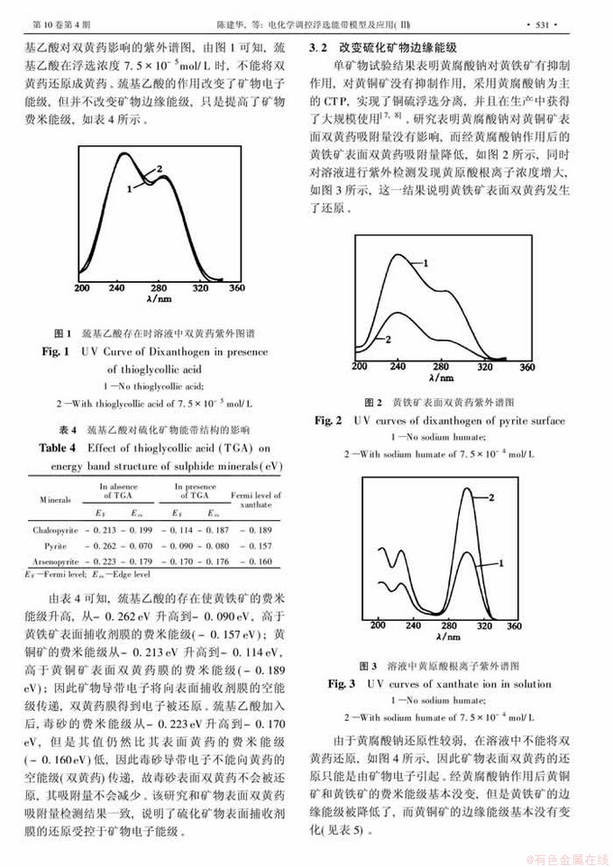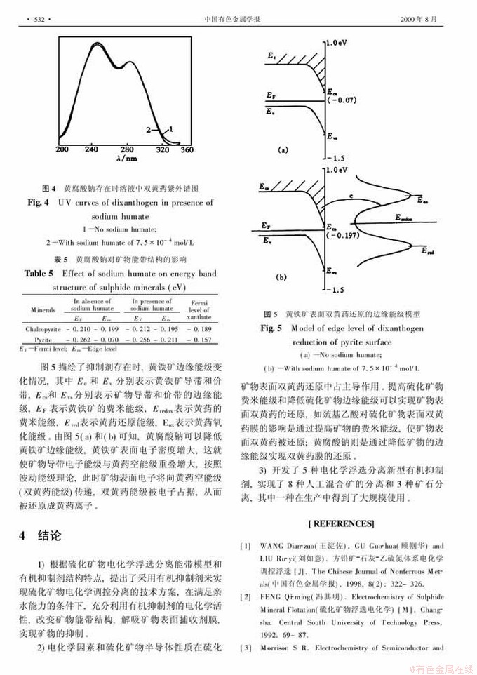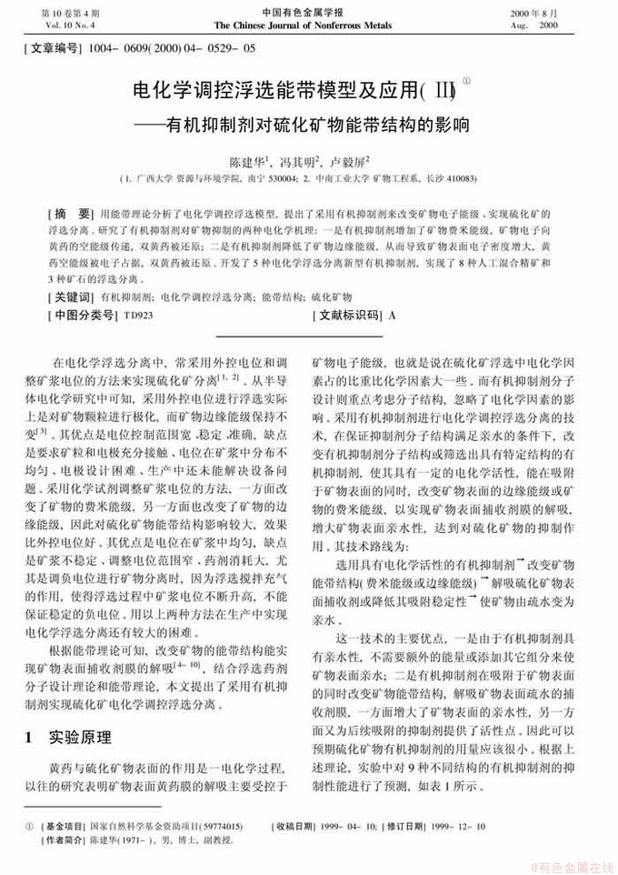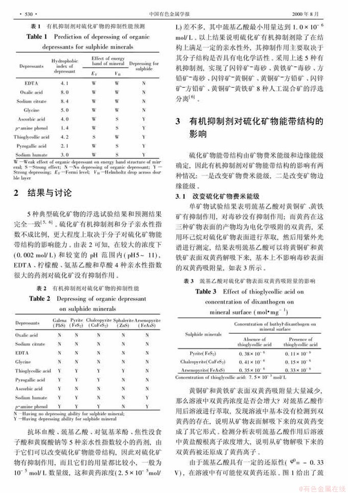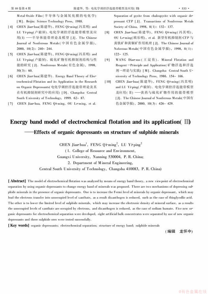 Key words:organic depressants; electrochemical separation; structure of energy band; sulphide minerals