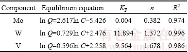 Like other chemical processes, the ion exchange equilibrium was characterized by corresponding equilibrium isotherms. In this case, the adsorption equilibrium between W, Mo and V is simulated with Henry model [22], Langmuir model [23] and Freundlich model [24]. These three models are as follows: