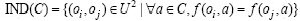 定义2 设T为定义的信息系统,U为该信息系统的有限论域,条件属性集上的等价关系IND(C)定义为