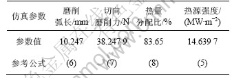 选取表1中的4号试验进行有限元仿真,由磨削加工参数和相应公式可以得到其仿真初始条件,如表2所示。