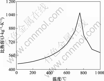 由于只考虑工件本身的热传导,而不考虑与空气的对流换热,因此只需设置材料的密度、热传导率以及比热容等参数。45钢密度为7 824 kg/m3,热传导率和比热容均同温度呈非线性关系[11],其变化曲线分别如图1和2所示。