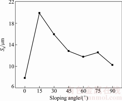 Fig. 5 Effect of sloping angle on Sa of sample surface
