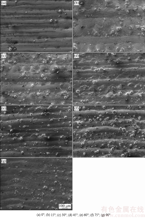Fig. 8 SEM images of surface morphologies of sample in various forming angles