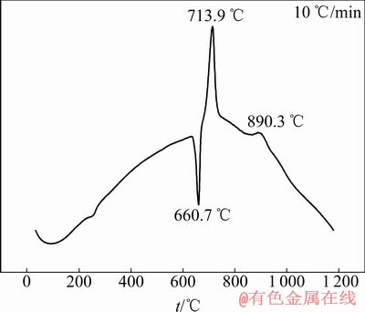 通过DSC分析对球磨后的粉体进行了差热分析。图1所示为反应体系球磨粉体的热分析结果。从图1中可以看出,掺杂Eu2O3的复合粉体在高温下有明显的吸放热现象(本曲线中吸热峰为下)。