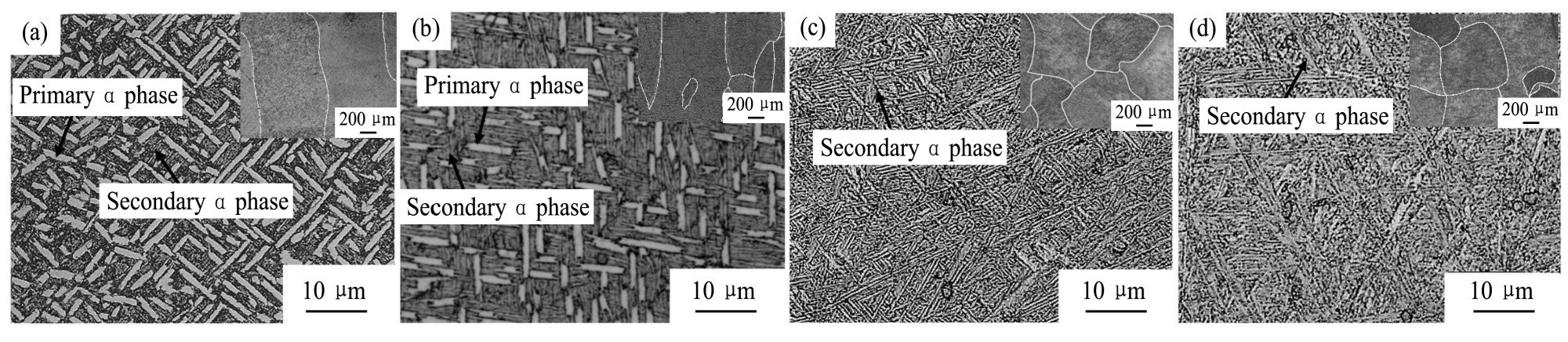 Ti-6Al-2Mo-2Sn-2Zr-2Cr-2V titanium alloy spherical powder was used as raw material to prepare titanium alloy samples by laser deposition. The size of titanium alloy spherical powder ranged from 80 to100 μm. The effects of different solid solution temperatures on the microstructure and mechanical behavior of laser-deposited titanium alloy were analyzed by optical microscopy(OM),scanning electron microscopy(SEM),hardness test and tensile test at room temperature. The results showed that in the process of laser deposition manufacturing,the metal powder was melted in the dynamic molten pool formed by laser beam irradiation. Most of the heat dissipated vertically in the molten pool and downward through the substrate in the form of heat conduction when the laser molten pool solidified,and resulting in the small melt in the molten pool epitaxial grown against the heat flow direction,formed coarse columnar β grains penetrating multiple deposition layers. A uniform and orderly basket structure braided in the columnar β grains,which was composed of a large number of slender α lamellae and a small amount of β phase. The macrostructure of the alloy was still coarse columnar β grains after solution and aging treatment in the α+β phase field. The intragranular structure was mainly composed of primary α phase and β transformation structure,and a small amount of lamellar secondary α phase. With the increase of solution temperature,the content of primary α phase decreased,and ratio of secondary α phase increased gradually,which increased the inter-tissue interface and decreased the compatibility of deformation,resulting in the increase of strength and a slight decrease of plasticity and hardness of the alloy. After solution and aging treatment in the β phase region,the macrostructure of the alloy was transformed from columnar crystals to equiaxed crystals,and the primary α phase disappeared completely,all of which were thin lamellar secondary αphases. With solution temperature increased,the width of the secondary α phase layer became larger,the grain boundary was reduced,and the plastic deformation ability was further weakened,resulting in the decrease of strength,plasticity and microhardness.At 900 ℃/2 h,AC(air cooling)+540 ℃/4 h,AC solution aging,the tensile strength and yield strength increased from 1024.2 and 933.1 MPa to 1177.1 and 1064.8 MPa respectively,and the plasticity also increased. The elongation increased from 6.0% to 7.5%,and the reduction of area increased from 14.1% to 20.4%;When the temperature exceeded the transformation point,at 920 ℃/2 h,AC+540 ℃/4 h,AC solution aging,the tensile strength and yield strength further increased to 1185.6 and 1078.4 MPa respectively,and the elongation and reduction of area decreased to 6.2% and 11.5%,respectively. At 960 ℃,the tensile strength and yield strength decreased slightly,reaching 1172.0 and 1057.1 MPa,and the plasticity decreased obviously. The elongation and reduction of area were only 2.6% and 6.2%. Compared with conventional TC4 titanium alloy,the strength of TC4 titanium alloy increased obviously,but the plasticity decreased slightly. And at 920 ℃/2 h,AC(air cooling)+540 ℃/4 h,AC solution aging,the alloy tensile strength at room temperature was 1183.5 MPa,yield strength was 1066 MPa,elongation was 7.1%,the area shrinkage was 18.2%,and the alloy had the best strength-plasticity matching. With the increased of solution temperature,the microhardness value of titanium alloy increased first and then decreased,because the microstructure of primary α phase was very important to the hardness of titanium alloy.When the titanium alloy was solution aged in the α+β two-phase region,the lamellar size of the primary α phase was significantly reduced compared with that of the deposited phase,and a small amount of acicular secondary α phase precipitated,which led to the increase of interphase interface ratio. Under the same pressure,the grain slip distance decreased,which was reflected in the increase of micro hardness. When the solution temperature rose to above the phase transformation point,the secondary α phase grew into a thin lamellar layer,the proportion of interphase interface increased,and the deformation coordination ability of secondary α phase was lower than that of primary α phase,so that the microhardness of titanium alloy at 940 ℃ was significantly higher than that at 920 ℃. When the solution temperature increased to 960 ℃,the secondary α phase layer coarsens,the interface proportion and the hardness of the alloy decreased slightly. The fracture mechanism of the sedimentary sample was the same as that of the two-phase solution aging sample.A large number of dimples were distributed in the micro morphology,which was a typical ductile fracture feature. Compared with the as deposited dimples,the dimples in the solution and aging state were larger and deeper,and the plasticity was better. The results showed that no obvious necking phenomenon in the β single-phase region,a small amount of dimples existed in the micro morphology,and obvious cleavage plane appeared in some regions,resulting in poor plasticity,and the fracture mode was quasi cleavage fracture.