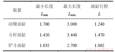 表1 工作装置液压油缸参数