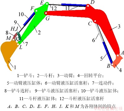 1 液压挖掘机工作装置动力学数学模型