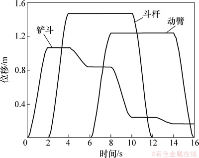 图3 动臂、斗杆和铲斗驱动函数曲线
