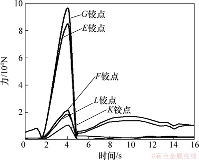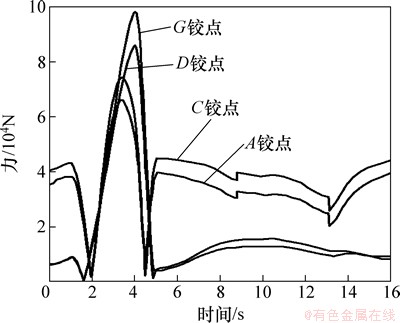 图10 斗杆上各铰点的受力变化曲线