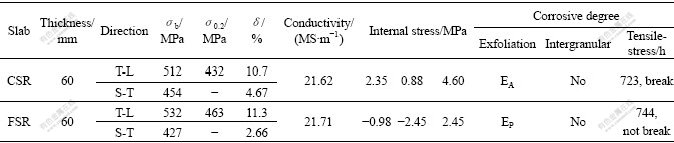 Table 1 Chemical compositions of 7B04 alloy for CSR and FSR technologies (mass fraction, %)
