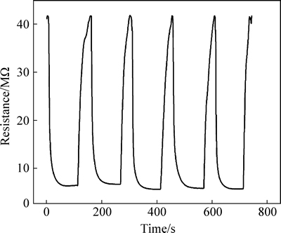 Fig. 7 Reproducibility and response of gas sensor based on 5Au-HA versus time for a concentration of NH3 of 1000×10-6 at room temperature