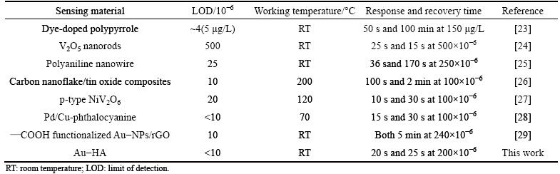 Table 1 NH3 sensing property of 5Au-HA compared with other gas sensor reported in recently literature