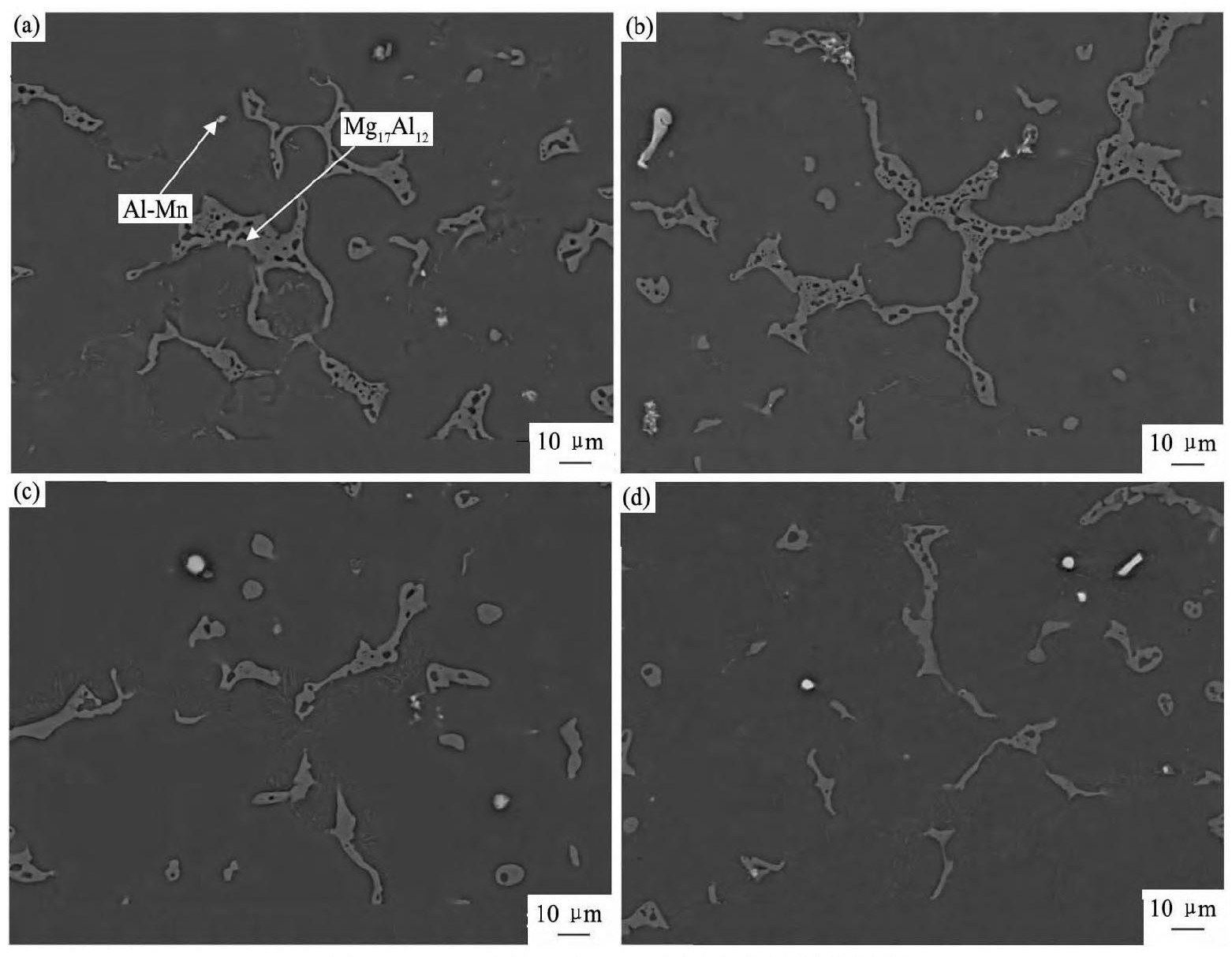 图 5 添加 Al-Zr-B 中间合金固溶处理后 AZ91D 镁合金的显微组织Fig. 5 Microstructures of AZ91D with addition of Al-Zr-B master alloy and solid solution treatment