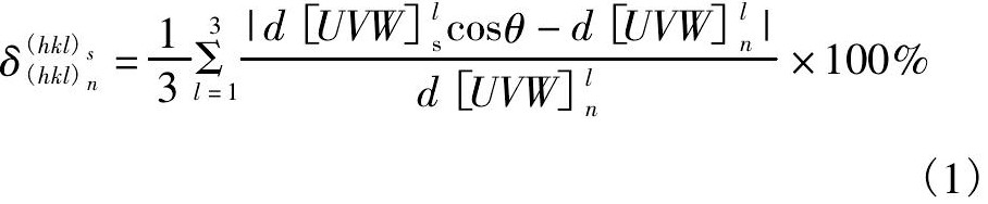 根据Bramfitt建立的二维点阵错配度理论模型, Zr B2和Mg在低指数晶面上的错配度可按下式计算: