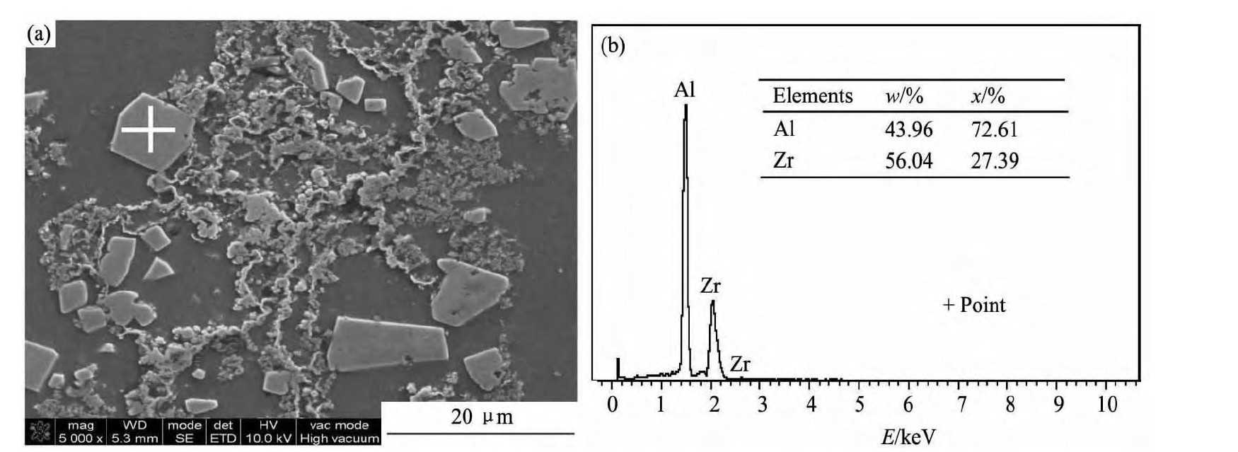 图 2 Zr Al3的 SEM 像和能谱分析Fig. 2 SEM image ( a) and EDS analysis ( b) of Zr Al3