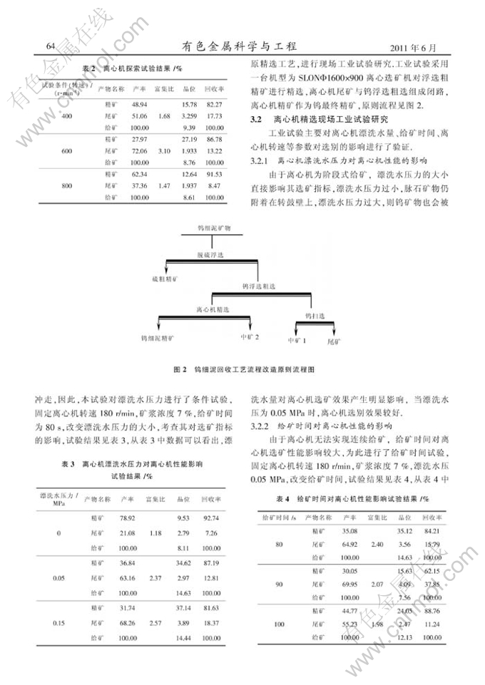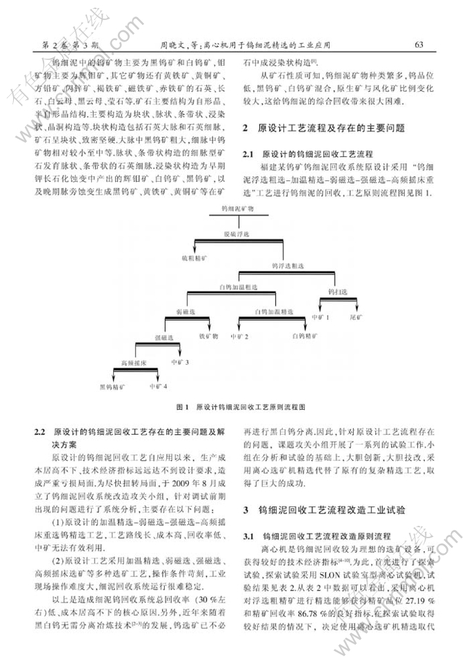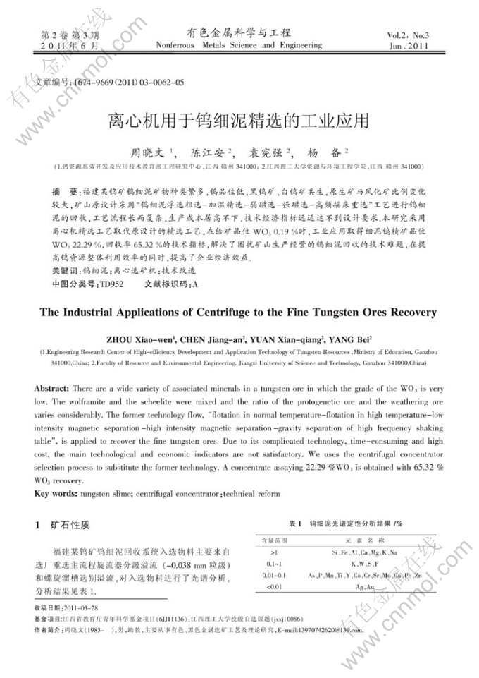 Key words:tungsten slime; centrifugal concentrator; technical reform