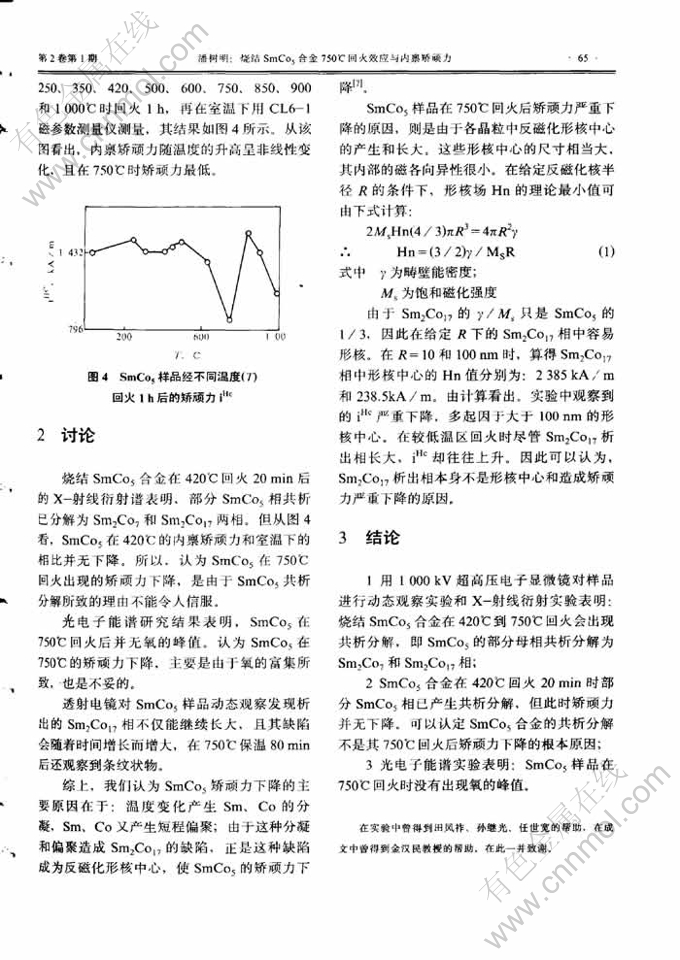 关键词:烧结合金 SmCo5 回火效应 内禀矫顽力