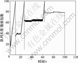 (3) 40 s启动第3条正常流,队列长度略有波动后很快达到稳定并且不会持续增长。