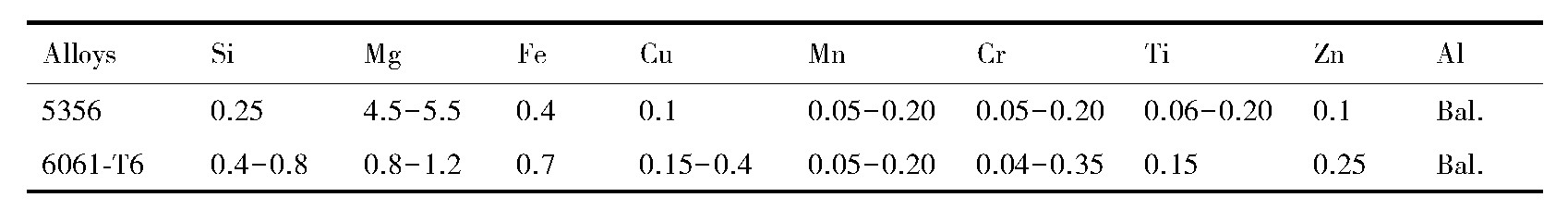 Table 1 Chemical compositions of ER5356 wire and 6061-T6 Al plate(%,mass fraction)