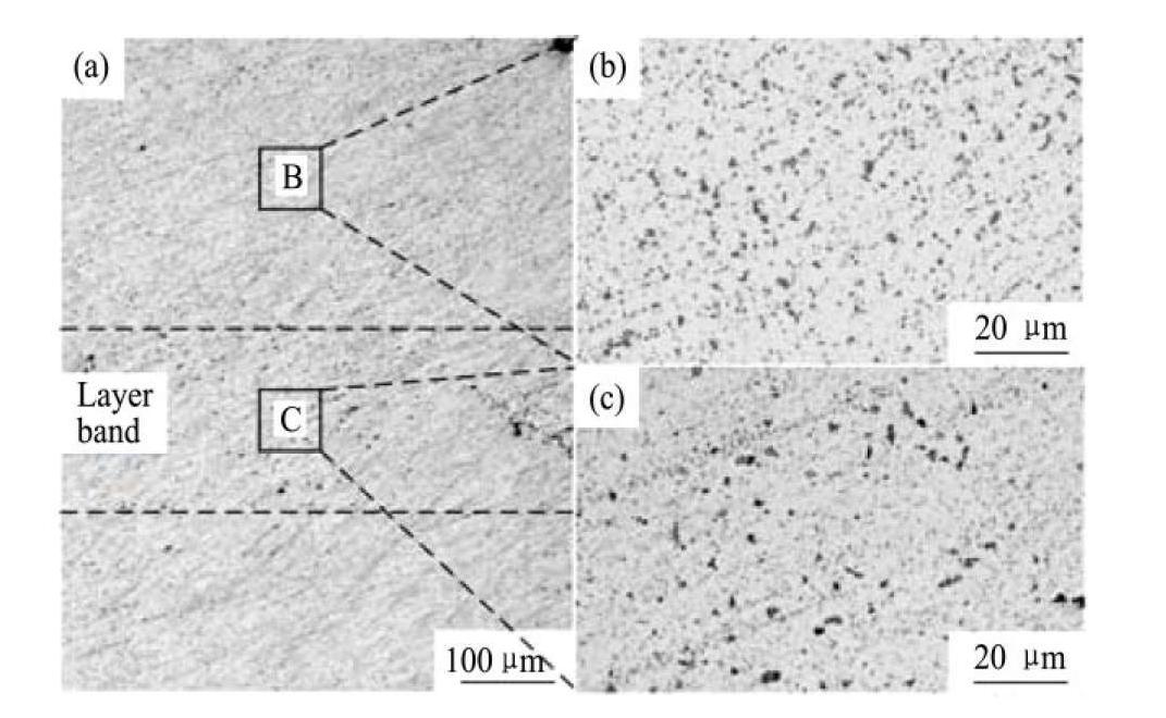 (a) Macrograph;(b) Deposition zone;(c) Layer band