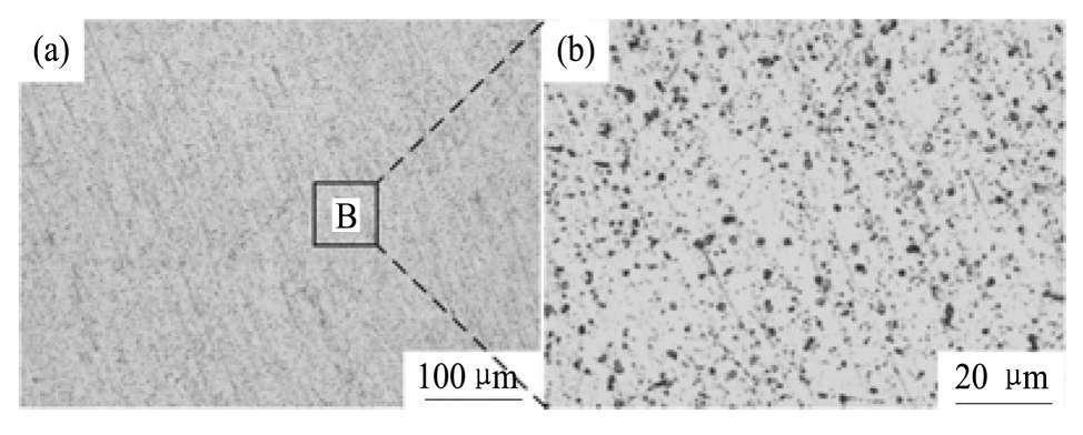 图4为均匀化热处理后沉积试样显微组织,对比发现,经均匀化热处理后,试样组织内部析出更多的弥散强化相β(Al3 Mg2 ),且分布更为均匀,同时均匀化退火使层带消失。