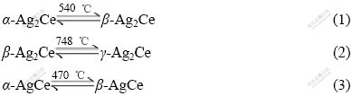 例如Ag-Ce二元系(见图1)[1?4],存在以下3个晶型转变: