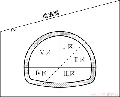 图11 浅埋偏压隧道衬砌结构破坏机制分区图