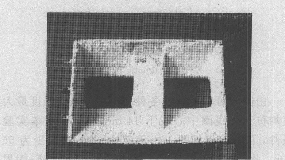 图7所示为普通电磁铸造法制备的铸锭。 由图可以看到, 铸锭侧表面两分流槽出口处形成的条状夹杂带, 由电磁搅拌造成熔体流动和液面不断更新导致的表面氧化膜进入液柱所形成。