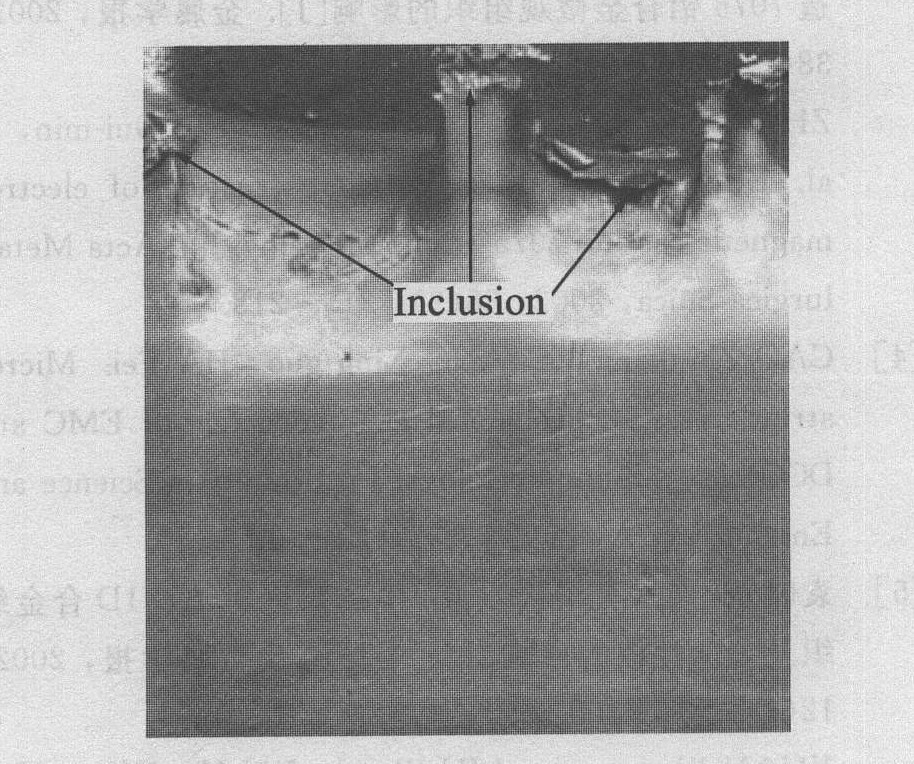 , 但是由于电磁铸造中固有的电磁搅拌作用导致弯月面的波动, 在液柱表面不断形成新的氧化膜, 导致电磁铸造铸锭表面和内部产生氧化夹杂
