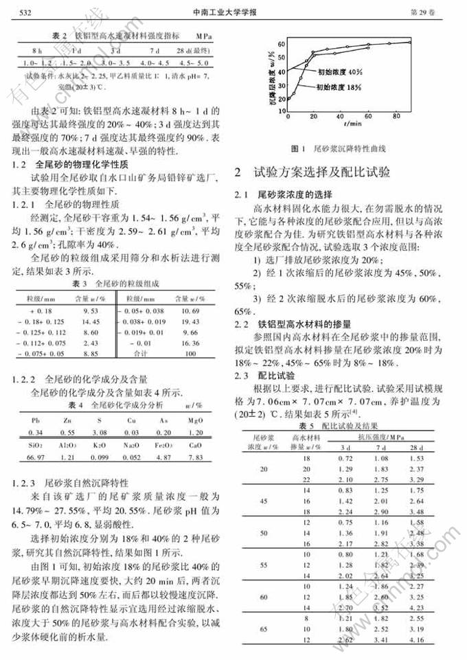 铁铝型高水速凝全尾砂充填材料的试验研究