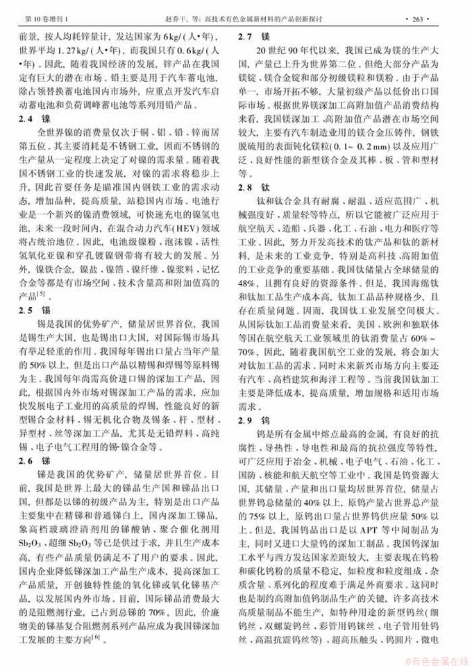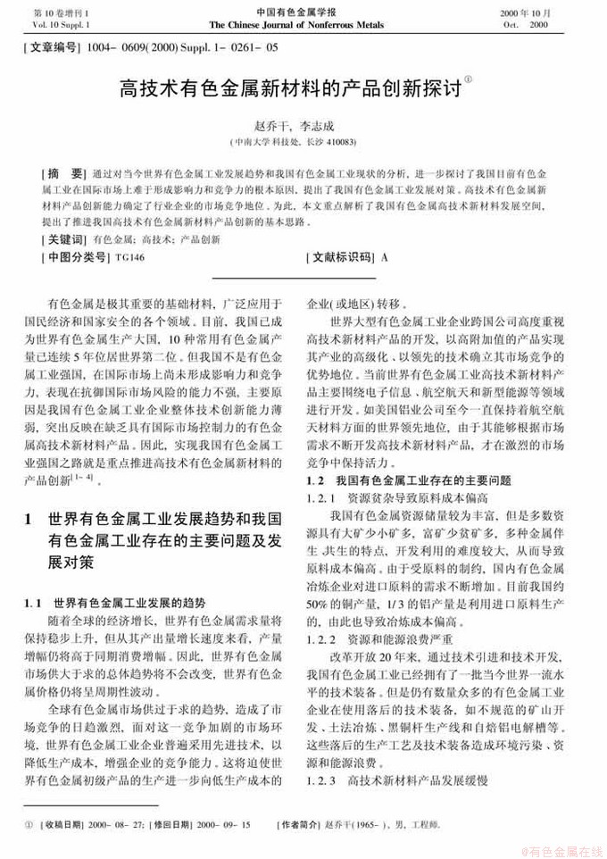 摘 要:通过对当今世界有色金属工业发展趋势和我国有色金属工业现状的分析 ,进一步探讨了我国目前有色金属工业在国际市场上难于形成影响力和竞争力的根本原因 ,提出了我国有色金属工业发展对策。高技术有色金属新材料产品创新能力确定了行业企业的市场竞争地位。为此 ,本文重点解析了我国有色金属高技术新材料发展空间 ,提出了推进我国高技术有色金属新材料产品创新的基本思路。