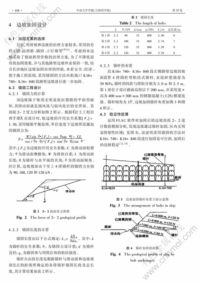 Key words:slope; stability; simulate; FLAC; bolt anchor; reinforcement