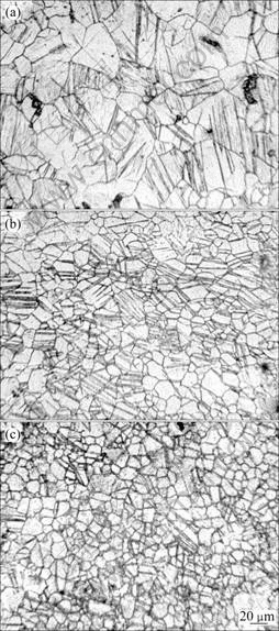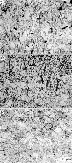 Fig.5 Microstructures of AZ31 Mg alloy sheets at different rolling temperatures