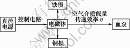 大间隙磁力驱动系统原理示意图如图1所示;轴流式血泵示意图如图2所示,由轴承、叶轮和永磁体等构成。图3所示为系统的能量传递框图,电能从直流电源输出到电磁体,通过电磁体线圈上电压(电流)