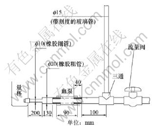 为水溶液密度;ha为净扬程(即泵水回路扬程);hf为管路沿程损失;hm为管接头局部损失;hv为血泵出口能量转化的水柱高度。