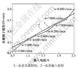(1) 图7和图8所示为驱动扭矩T与负载扭矩Tl在不同耦合距离下的对比曲线。可见:驱动扭矩取决于输出电流,并且与电流成正比关系,而负载扭矩取决于血泵转速;血泵的驱动扭矩T与负载扭矩Tl之间的差值来源于血泵本身的机械损耗。