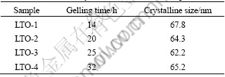 Table 1 Gel time and crystalline sizes of Li4Ti5O12 powders