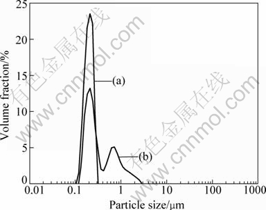 Fig. 4 Particle size distribution of LTO-3 (a) and pure LTO (b) samples