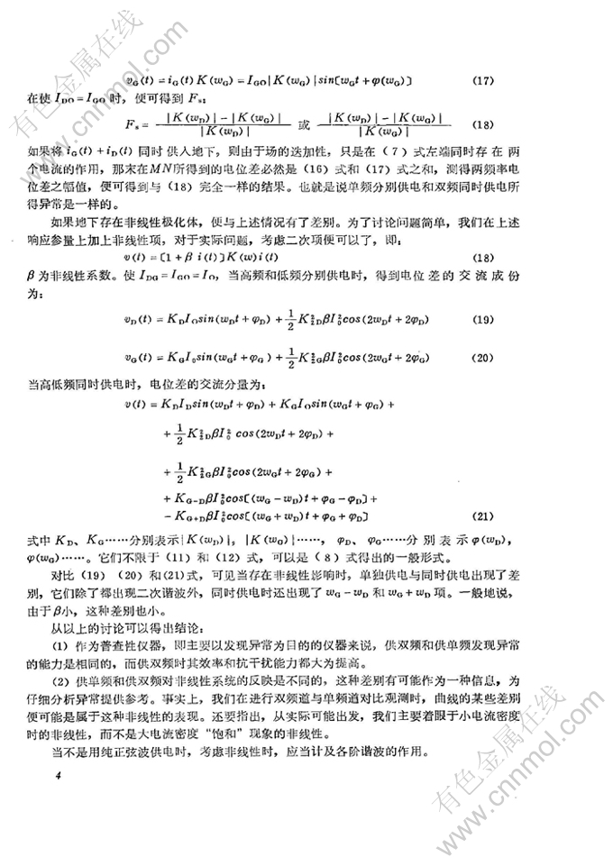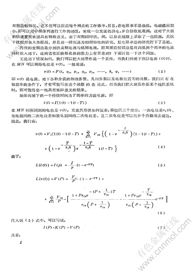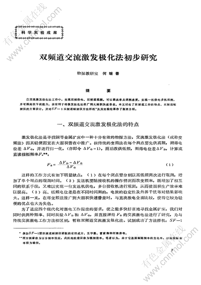 关键词:交流激发极化法; 双频道; 快速普查; 变频法; 单点观测; 观测精度; 交流激电法; 视幅频率; 极化体; 测量电极