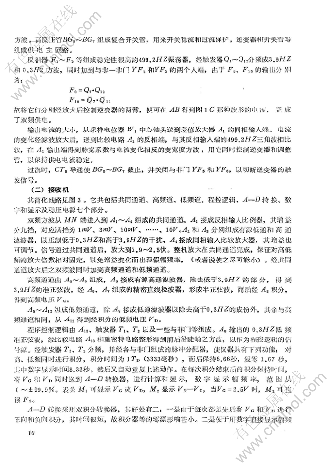 摘 要:在交流激发极化法工作中,实现双频供电、双频遭观测,可以提高单点观测速度,实现一机供电多机观测,并可提高抗干扰能力,故有利于将激发极化法推广到大面积快速普查。本文讨论了双频道工作的特点、双频道幅频仪的方案设计,并对SF-1双频道幅频仪方法样机及其实验结果作了扼要介绍。