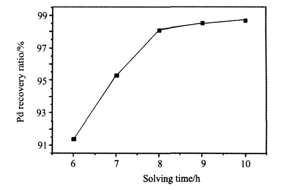 Fig.3 Effect of solving time on recovery ratio of Pd