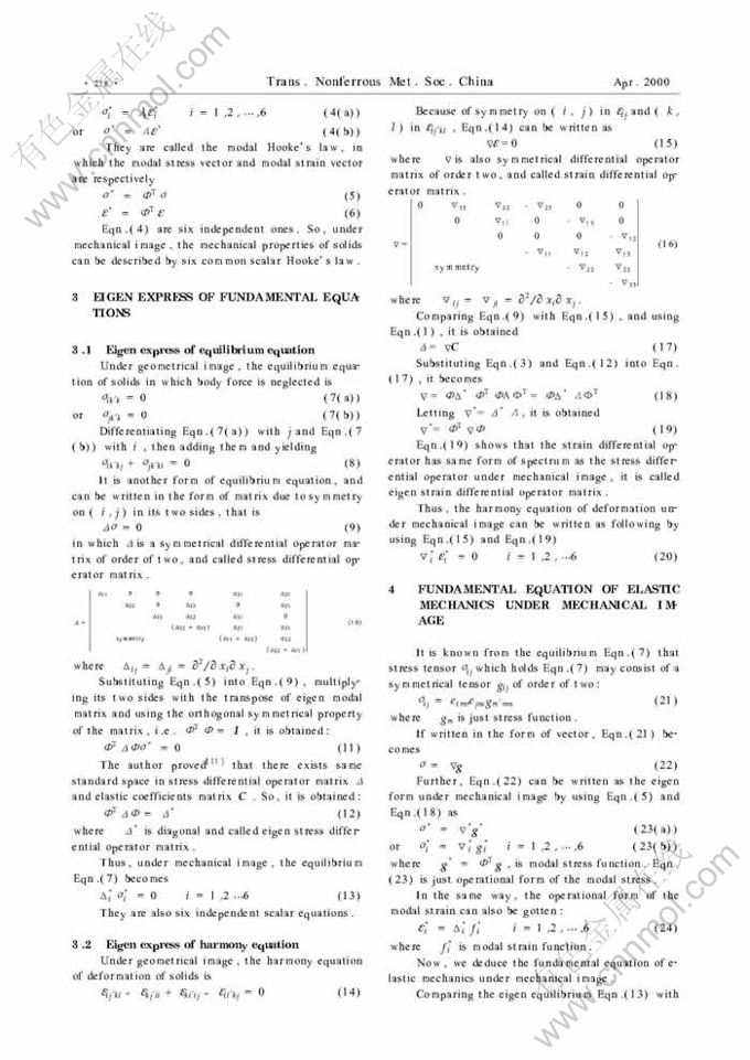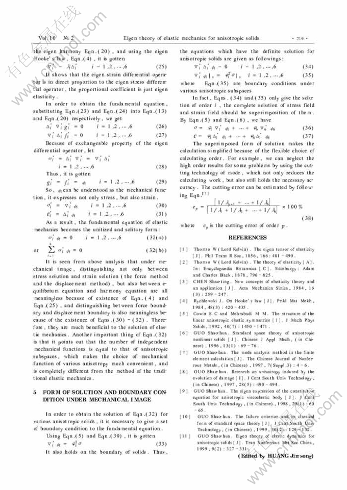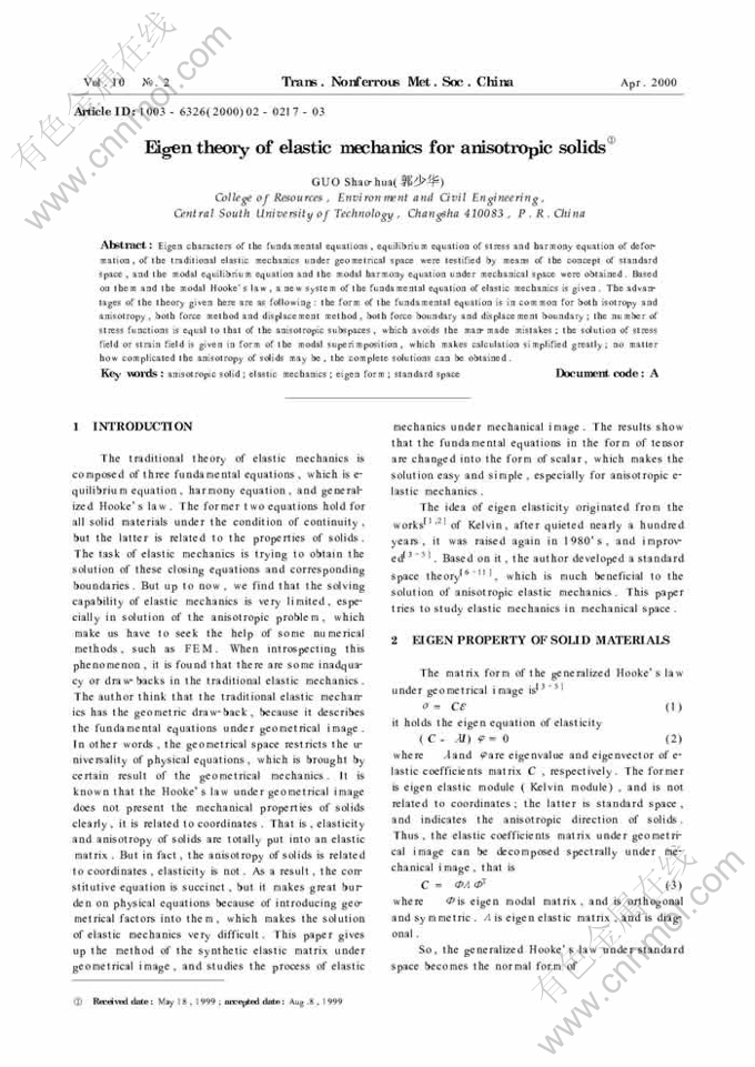 Key words:anisotropic solid; elastic mechanics; eigen form; standard space