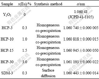 Table 1 Cell parameters of (Y1-xEux)2O3