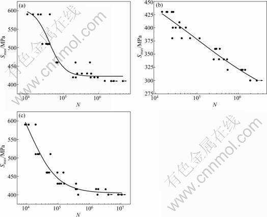 图3所示为3组耳片的Smax—N曲线。从图3可以看出,在平均应力