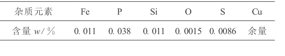选用3号工业纯铜为原料, 原料杂质成分见表1, 向3号工业纯铜液中添加不同含量的锂, 成分设计见表2。